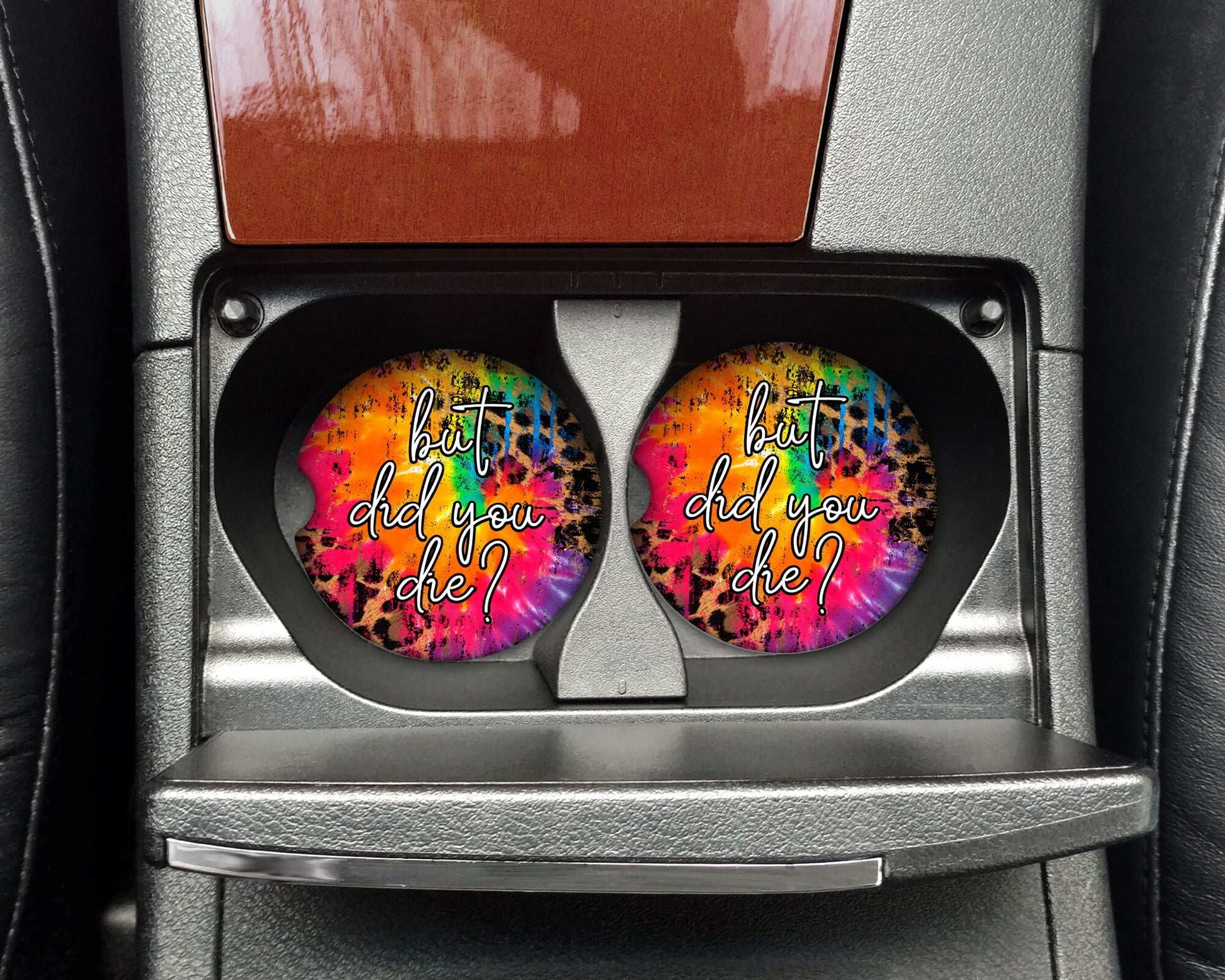 Keep your cup holders laughing with this cheeky set of two car coasters featuring the hilariously relatable phrase "But Did You Die?" Crafted from durable neoprene, these 2.63" coasters add a splash of vibrant color and humor to your daily commute. Perfect for protecting your car's cup holders from spills while delivering a dose of witty attitude. Just remember to measure your cup holders first—not all cars are created equal!