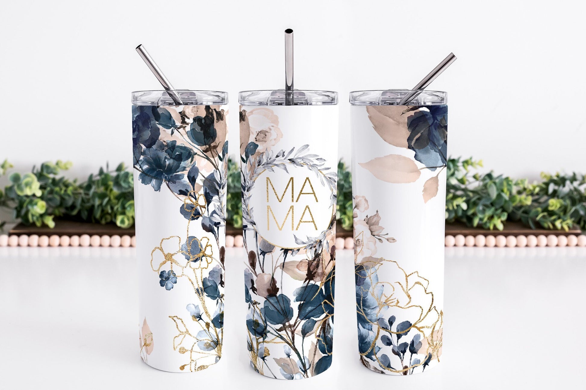 20oz stainless steel mama blue floral tumbler.