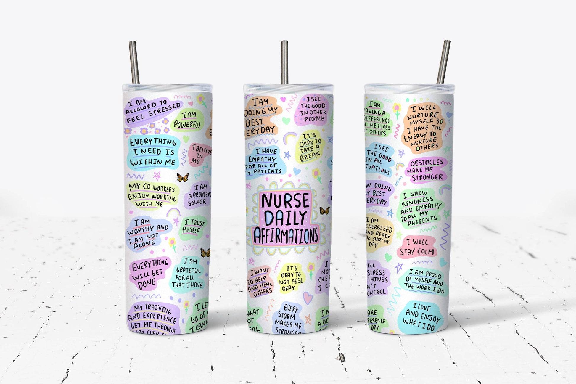 Start your shift with a little extra motivation! This 20oz stainless steel tumbler keeps your coffee piping hot or iced tea refreshingly cold thanks to double-wall insulation. The secure slide-locking lid and included straw make sipping on the go effortless. Featuring daily affirmations specially designed for nurses, the vibrant image is permanently applied using heat transfer technology—no cheap epoxy or glitter here. Each tumbler is handcrafted just for you, so treat it gently with handwashing to preserve those uplifting words for years to come.