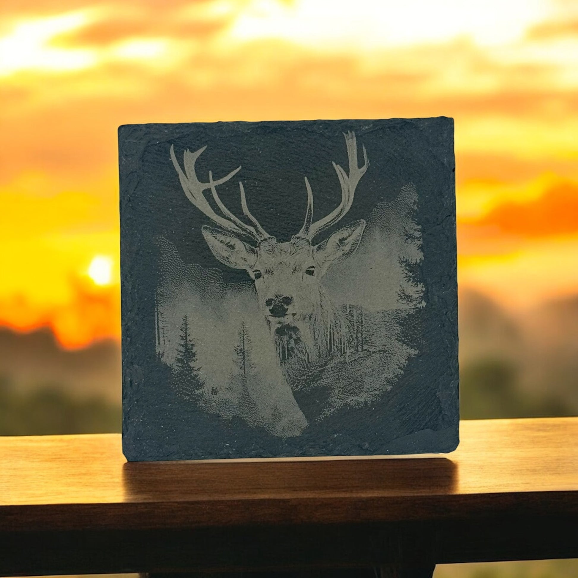 Bring the beauty of the wild into your home with our handcrafted Rustic Wildlife Coasters. Each coaster features a striking silhouette design of a majestic deer, powerful bear, fierce wolf, or soaring eagle, etched on a 3.75” square slate base. Perfect for nature lovers, cabin décor, or anyone who appreciates the great outdoors.