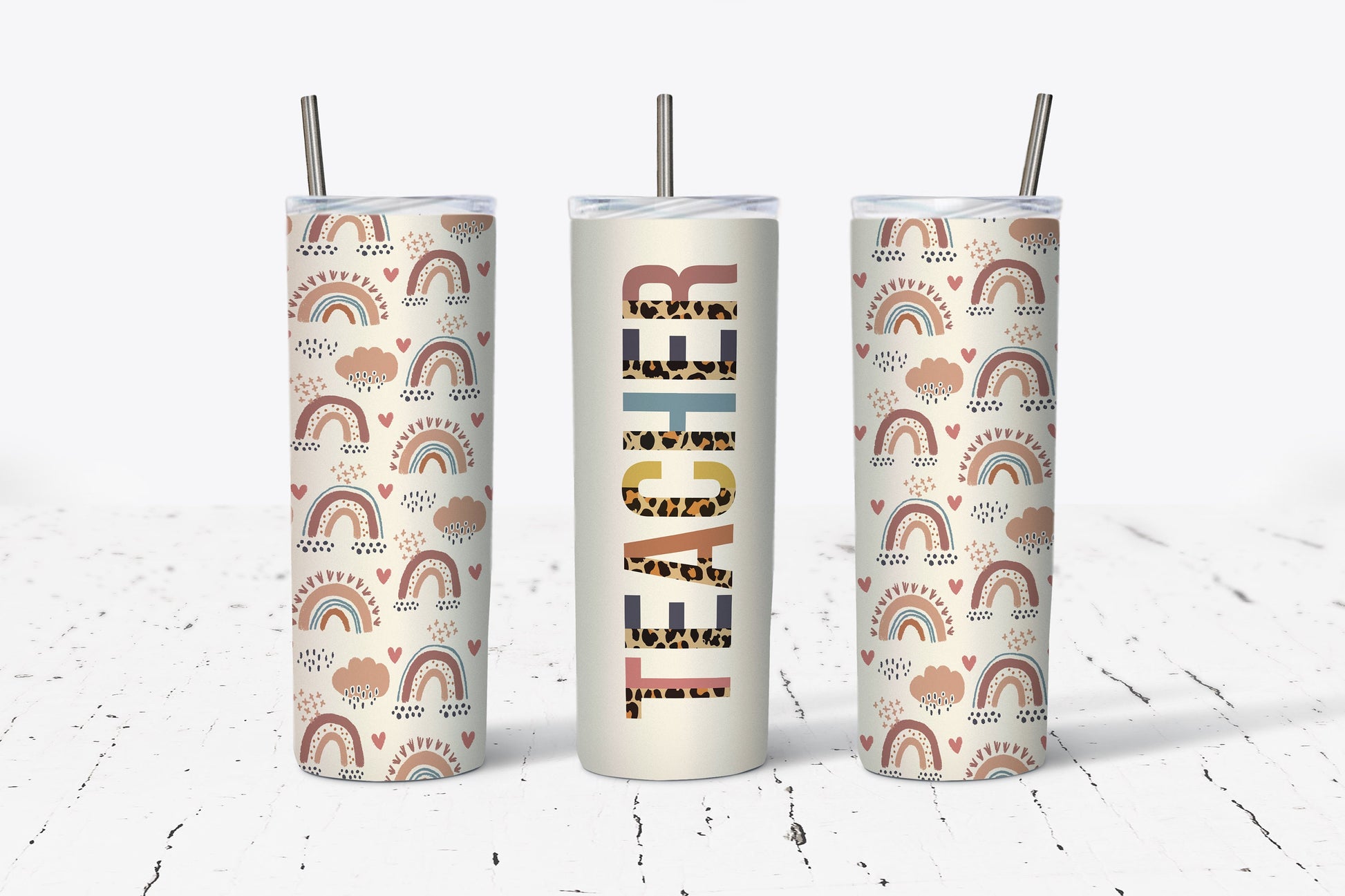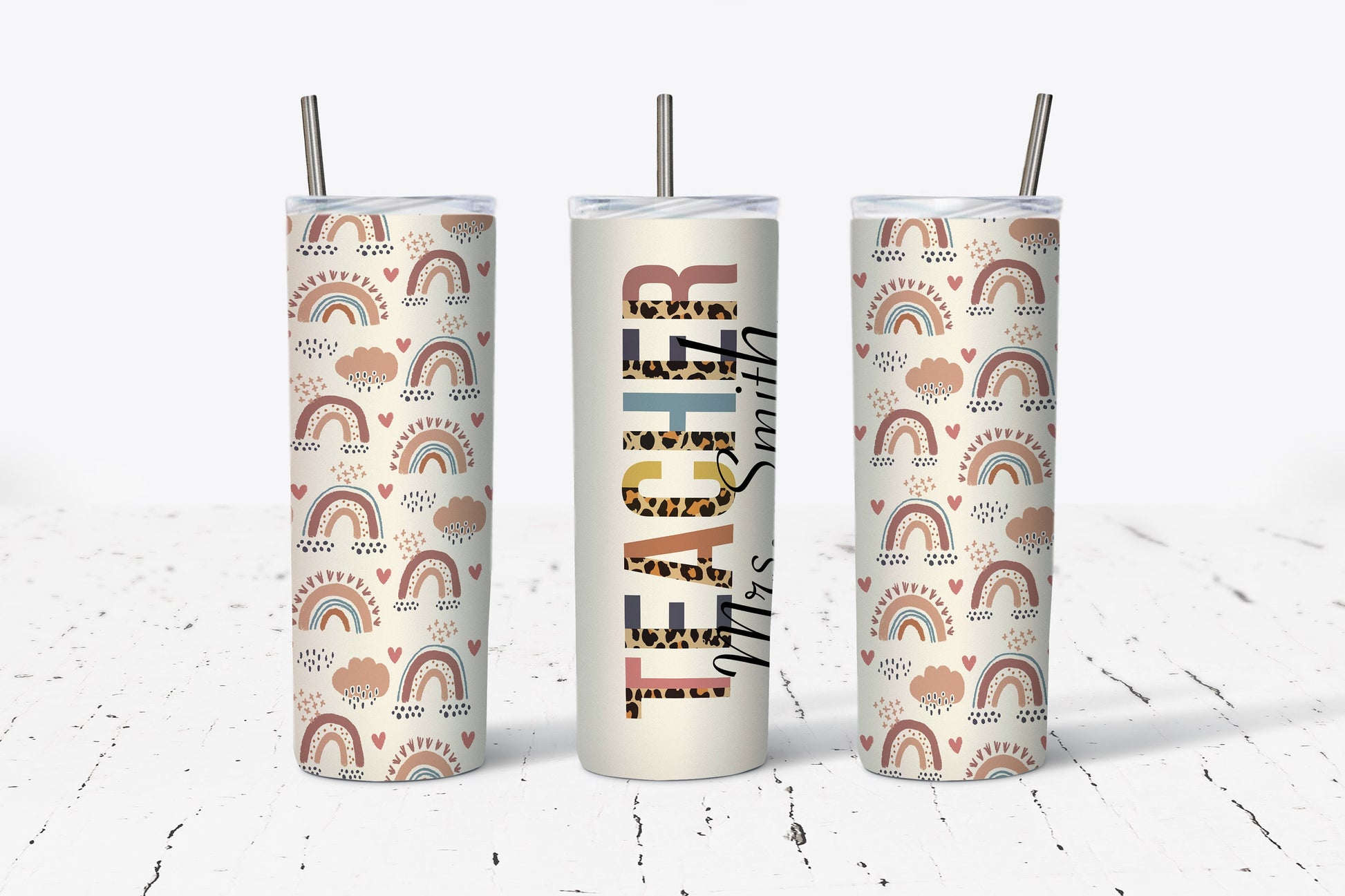 Teacher Personalized or Blank Rainbow, Leopard 20oz Stainless Steel Tumbler